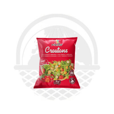 Découvrez les croutons goût tomate et origan de la marque portugaise Rialto vendus en sachet 75G.