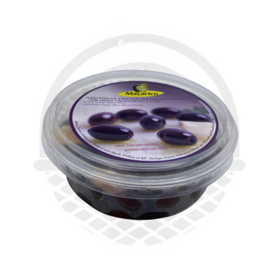 Olives noires entières galega avec huile d'olive et ail "Macarico" barquette plastique 150g