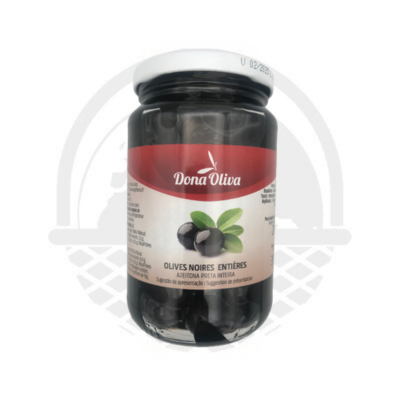 Les Olives Noires Entières de la marque Dona Oliva proviennent du Portugal et sont vendues dans des bocaux de 210G.